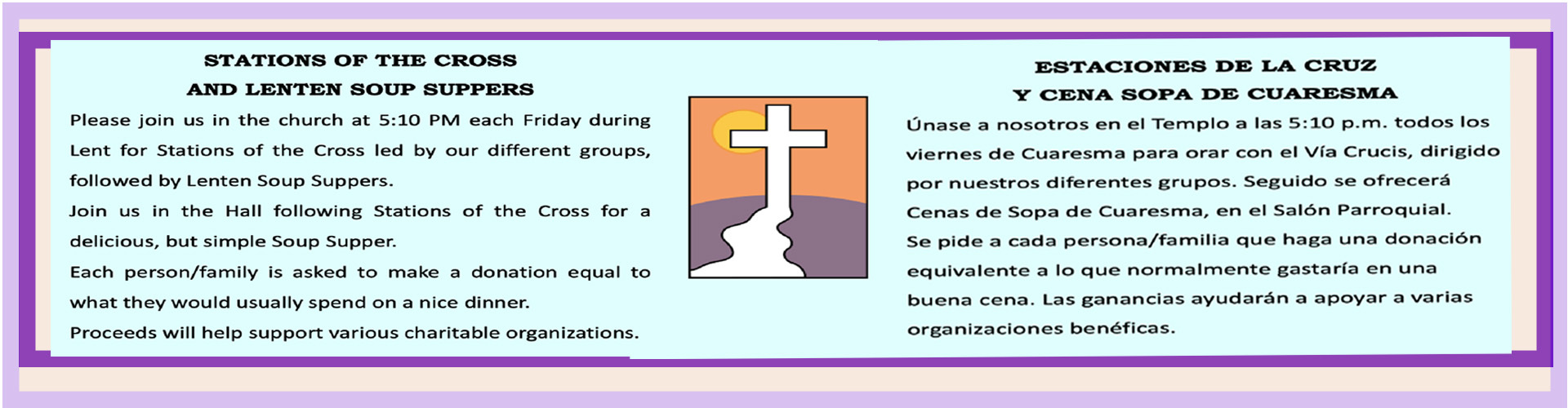If you are interested in registering in our Parish, please click for the English Form HERE and for the Spanish form AQUI.
