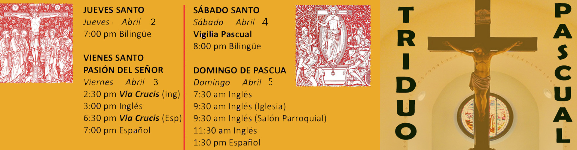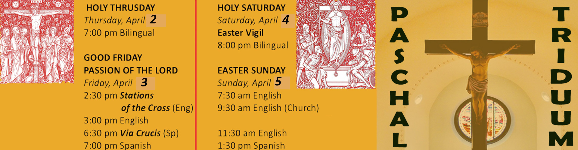 Fridays, 7:00-8:00 PM (Spanish): Exposition of the Blessed Sacrament, Holy Hour, Benediction.